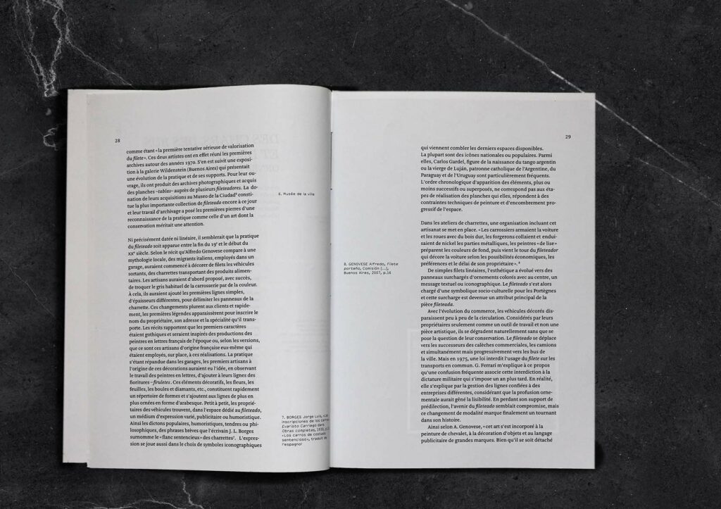 Mémoire de DNSEP : étude de la pratique du fileteado et du regard du designer européen sur une pratique traditionnelle argentine.